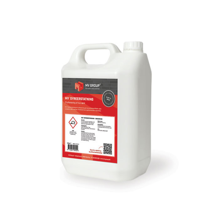 MV® Syreerstatning er til afrensning på murværksoverflader uden vanadium eller mangan. MV® Syreerstatning gør det nemt at rense murværket for mørtelrester og reducerer ligeledes risikoen for salpeterudslag.