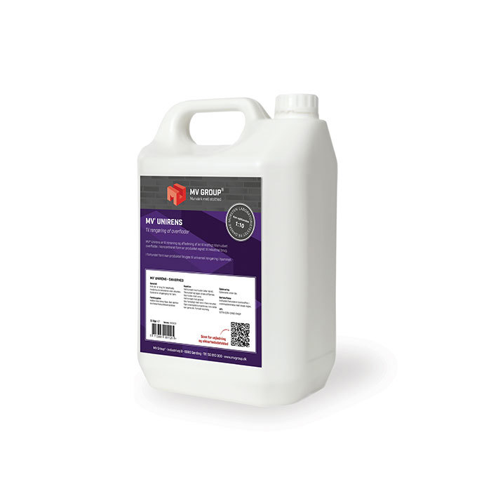 MV® Unirens er til rensning og affedtning af let til kraftigt tilsmudsede sten, tagsten, murværk og meget mere.