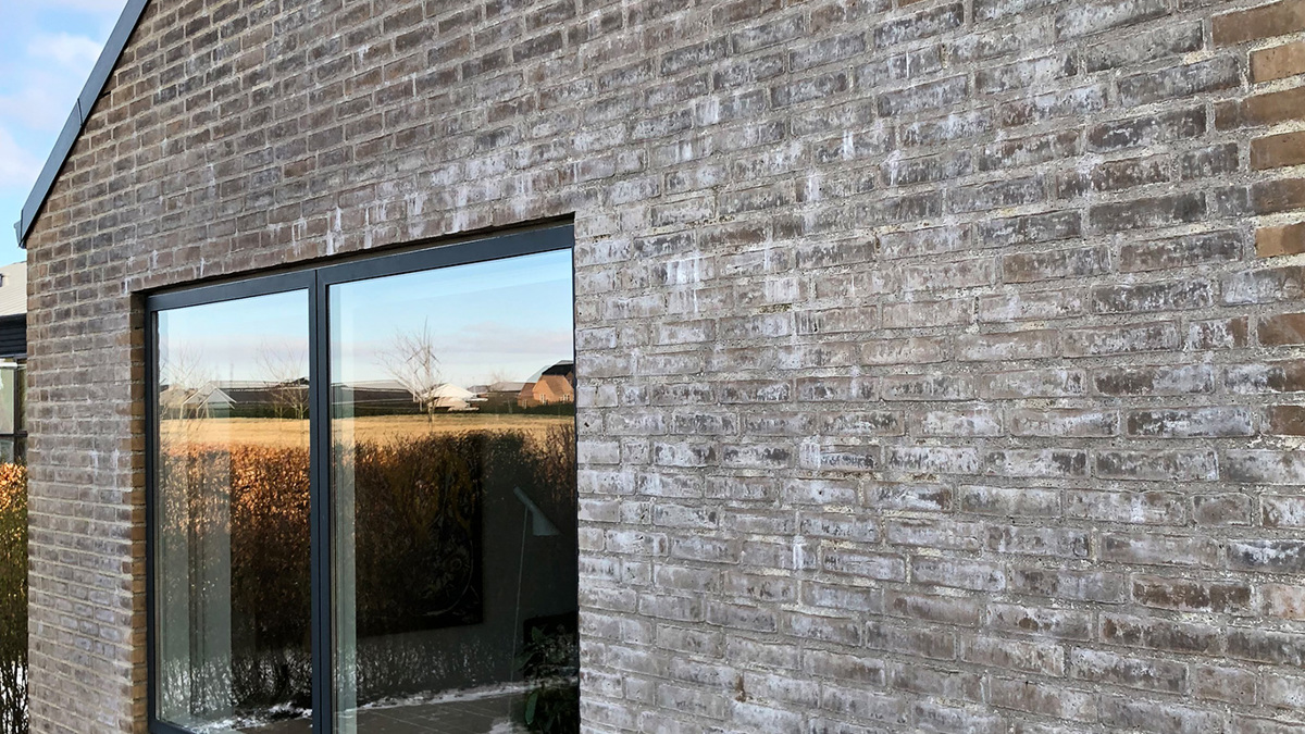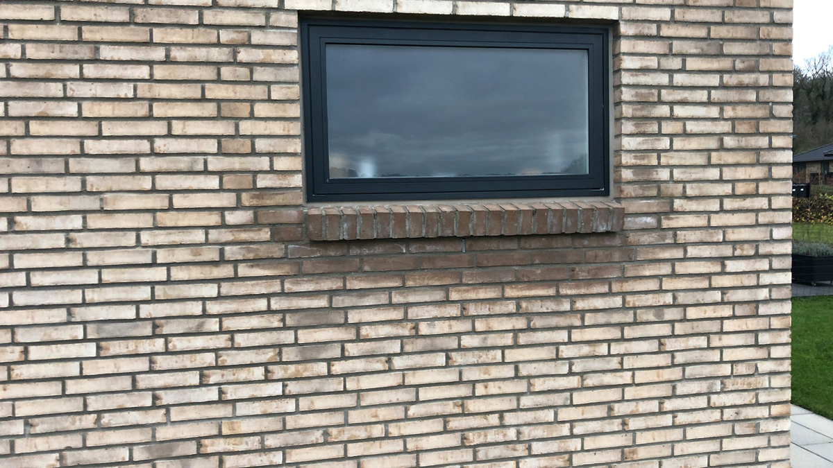 Sålbænk muret med teglsten. Når man vælger sålbænk i tegl, vil alt vandet fra vinduerne suge ned i murstenen. Dette kan skabe en ophobning under sålbænkene og give misfarvninger og skader. Vores erfaring er at selvom murerpappen er udført korrekt, kan det fører til misfarvninger.
