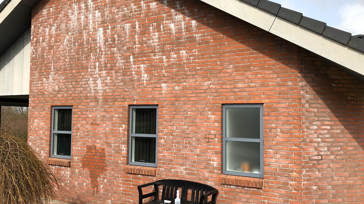 Svært misfarvet murværk kan opstå når, mursten, mørtel og udførselsteknik ikke er projekteret korrekt ud fra eksponeringsklasse/mx-klasse af byggeri.
